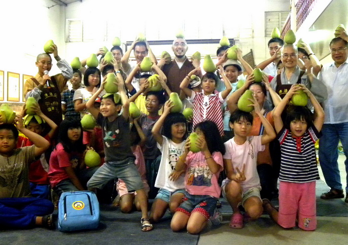 活動圓滿後,瑞穗農場當家德進法師並贈送每位來訪的小朋友一顆有機天然文旦柚,作為禮物,祝福大家都能「柚香、柚甜、柚平安」。